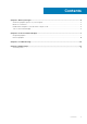 Notes, cautions, and warnings NOTE: A NOTE indicates important information that helps you make better use of your product. CAUTION: A CAUTION indicates either potential damage to hardware or loss of data and tells you how to avoid the problem. WARNING: A WARNING indicates a potential for property damage, personal injury, or death. © 2020 Dell Inc. or its subsidiaries. All rights reserved. Dell, EMC, and other trademarks are trademarks of Dell Inc. or its subsidiaries.
