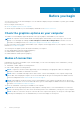 1 Before you begin You can connect up to four 4K external displays or two 5K and above displays using the Thunderbolt 3 (USB-C) ports available on your Precision 5750. Before you begin, ensure that you: ● Check the graphics options on your computer ● Check the ports available on your external displays and decide on the mode of connection Check the graphics options on your computer The number of external displays supported depends on the type of graphics card available on your computer.
