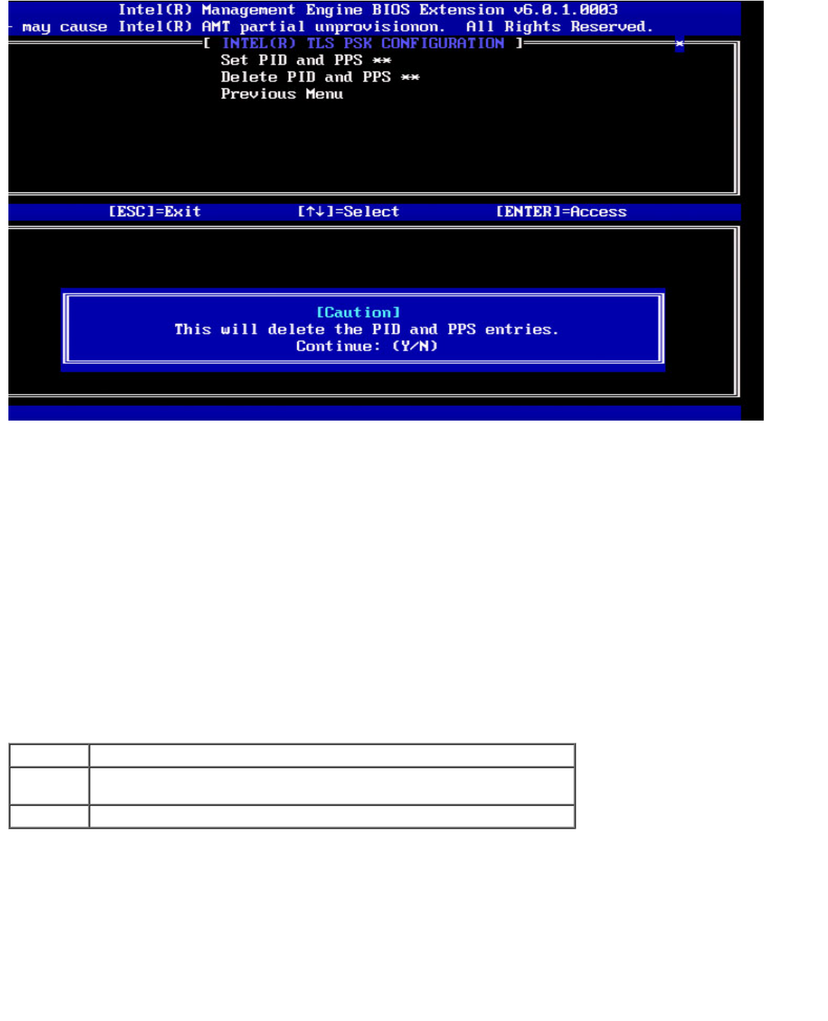 Under the Intel TLS PSK Configuration menu select Previous Menu and press Enter.