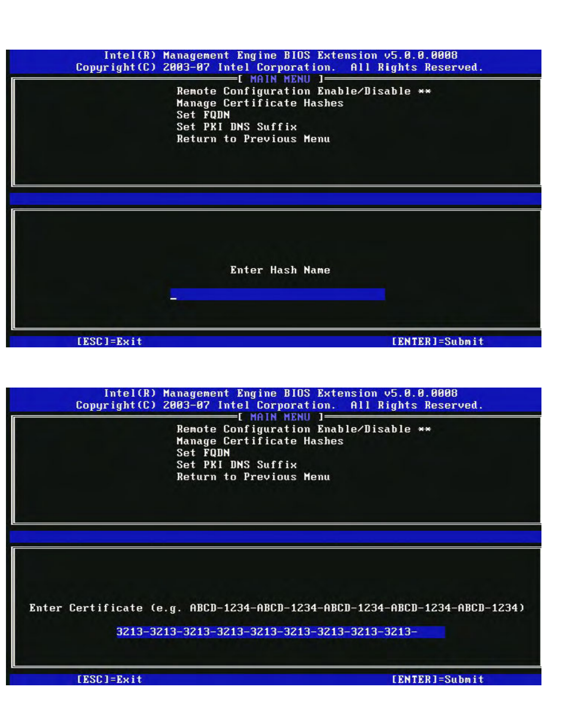 To add a customized certificate hash: Type the hash name (up to 32 characters). When you press Enter, you are