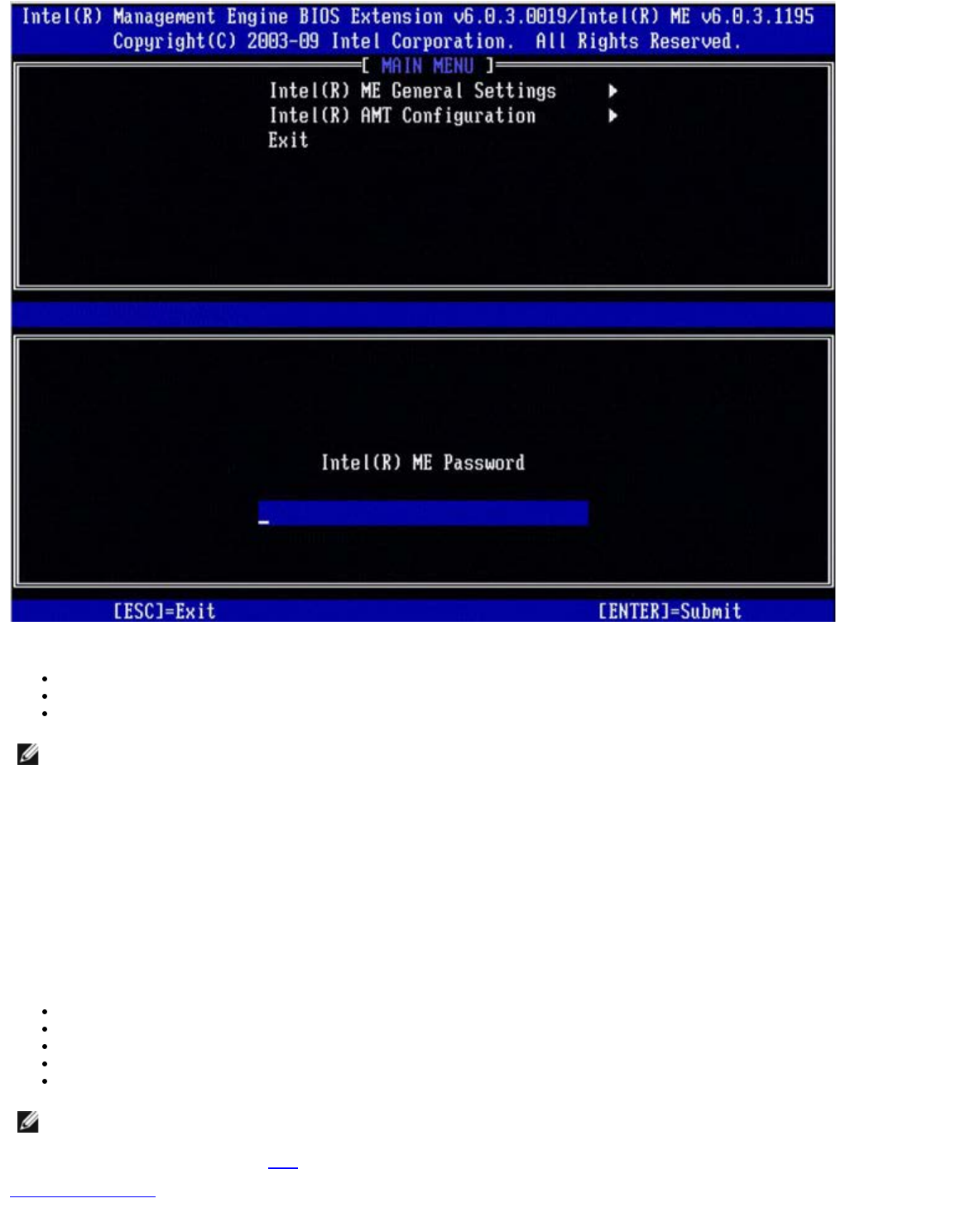 NOTE: Intel MEBx will display only detected options. If one or more of these options do not appear, verify that the