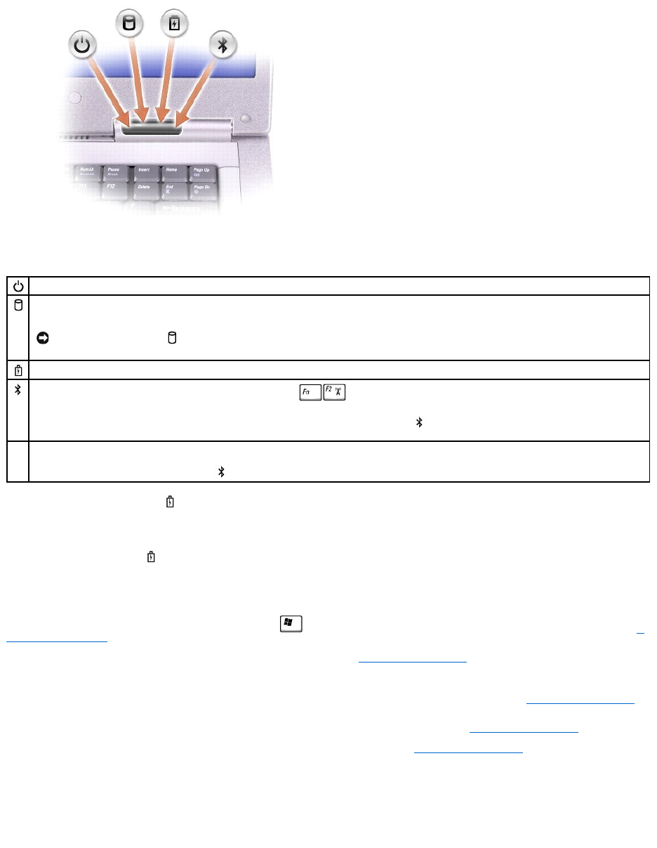 ¡ 消灯 ― バッテリーが十分に充電されているか、コンピュータの電源が切れています。あるいはバッテリーがコンピュータに取り付けられていません。