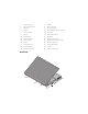 1 Lesegerät für Smart Card (zwei Steckplätze) und PC Card 2 Optisches Laufwerk 3 8-in-1-Kartensteckplatz 4 Akkustatusanzeige 5 Betriebsanzeige 6 USB 3.