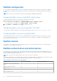 Table 1. Redfish authentication and authorization (continued) Redfish actions Authentication required Authorization required View OData service document No No View message registry No No View Redfish version URI No No View JSONSchemaFile resource URI No No View JSON schemas URI No No The Redfish service provides access to Redfish URLs by using the following methods: ● Basic authentication: In this method, user name and password are provided for each Redfish API request.
