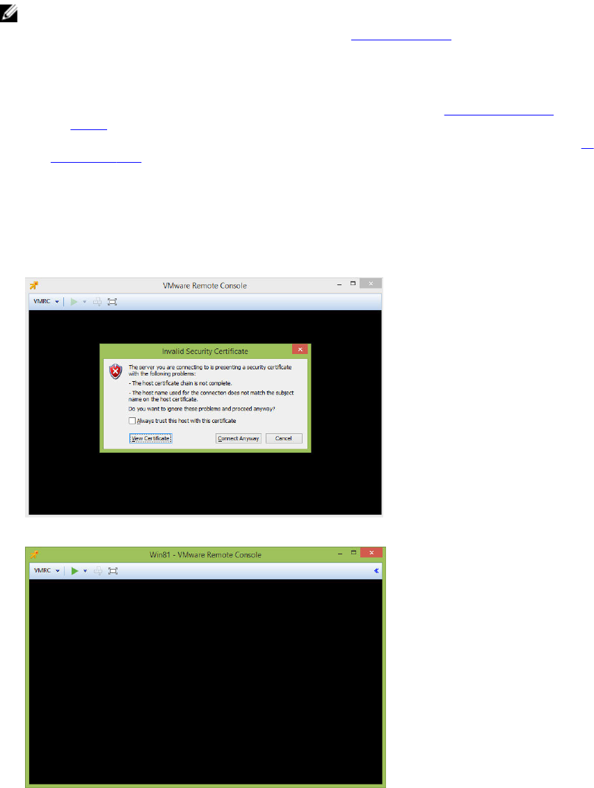 VMware 远程控制台打开,并显示“无效安全证书”对话框。