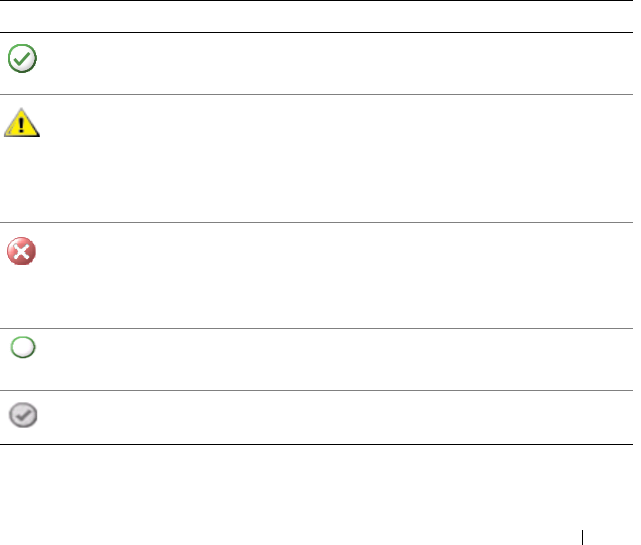 Table 2-1 lists the icons that indicate the health status of the discovered Dell