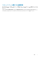 メモ、注意、警告 メモ: コンピュータを使いやすくするための重要な情報を説明しています。 注意: ハードウェアの損傷やデータの損失の可能性を示し、その問題を回避するための方法を説明しています。 メモ: 物的損害、けが、または死亡の原因となる可能性があることを示しています。 © 2013 Dell Inc. 無断転載を禁じます。 本書に使用されている商標:Dell™、Dell のロゴ、Dell Boomi™、Dell Precision™、OptiPlex™、Latitude™、PowerEdge™、PowerVault™、 PowerConnect™、OpenManage™、EqualLogic™、Compellent™、KACE™、FlexAddress™、Force10™、Venue™ および Vostro™ は Dell Inc. の商標です。Intel®、Pentium®、Xeon®、Core® および Celeron® は米国およびその他の国における Intel Corporation の登録商標で す。AMD® は Advanced Micro Devices, Inc.