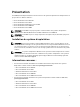 Remarques, précautions et avertissements REMARQUE : Une REMARQUE indique des informations importantes qui peuvent vous aider à mieux utiliser l'ordinateur. PRÉCAUTION : Une PRÉCAUTION indique un risque de dommage matériel ou de perte de données et vous indique comment éviter le problème. AVERTISSEMENT : Un AVERTISSEMENT indique un risque d'endommagement du matériel, de blessure corporelle ou de mort. © 2013 Dell Inc. Tous droits réservés.