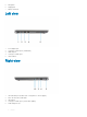 Video card Table 9. Video card specifications Controller Type Intel UHD Graphics 620 UMA CPU Dependency • 8th Gen Intel Core i5 processor 8th Gen Intel Core i7 processor • Graphics memory type Capacity External display support Maximum resolution Integrated Shared system memory HDMI 1.4a 4096 x 2304 Camera Table 10. Camera specifications Feature Specifications Resolution Diagonal viewing angle Camera Options • • Still image: 0.