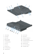1. Utløserknapp 12. Seriell kontakt 2. Strømknapp 13. VGA-kontakt 3. Lydkontakt 14. DisplayPort-kontakter (2) 4. Mikrofonkontakt 15. Spor til sikkerhetskabel 5. USB 2.0-kobling 16. USB 3.0-kontakt med PowerShare 6. Innstillingsindikator 17. USB 3.0-kontakter (2) 7. Krok foran 18. Nettverkskontakt 8. Krok foran 19. Spor til sikkerhetskabel 9. Krokbrett foran 20. AC-adapterkontakt 10. Innstillingsindikator 11.