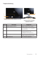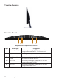 Tampilan Belakang  4 1 2 5 3 Tampilan Belakang tanpa dudukan monitor Tampilan belakang dengan dudukan monitor Label Keterangan Penggunaan 1 Tombol pelepas dudukan Melepas dudukan dari monitor. 2 Keamanan - Slot kunci Mengencangkan monitor dengan kunci pengaman (kunci pengaman tidak disertakan). 3 Label nomor seri barkode Baca label ini jika Anda perlu menghubungi Dell untuk mendapatkan dukungan teknis. 4 Slot pengaturan kabel Gunakan untuk mengatur kabel dengan memasukkannya ke slot.