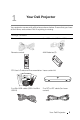1 Your Dell Projector Your projector comes with all the items shown below. Ensure that you have all the items, and contact Dell if anything is missing.