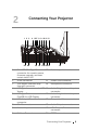 Monitor Loop-Through Connection Using VGA Cables 1 2 1 2 2 Power cord VGA to VGA cable NOTE: Only one VGA cable is shipped with your projector. An additional VGA cable can be purchased on the Dell website at www.dell.com.
