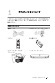 1 プ ロジ ェ ク タ について こ の プ ロ ジ ェ ク タ に は次の も の が付属 し て い ま す。 す べ て の付属品が揃 っ て い る こ と を ご 確認 く だ さ い。 万一、 不足の品が あ り ま し た ら 、 Dell ま で ご 連絡 く だ さ い。 同梱 さ れ て い る も の 電源 ケ ー ブ ル 5 m VGA ケ ー ブ ル (VGA - VGA) リモコン 単 4 電池 (2) A A A Page Up A Page Down Freeze VGA Video Source Auto Adjust Blank Screen A A Aspect Ratio S-Video Video Mode CD ユ ー ザ ー ガ イ ド お よ び ドキュ メント レーザー カ ーテ ンキ ッ ト S520 Dell™ | Interactive Projector Guide Laser Touch Quick Setup ron Crest s with jector View™ flexibility ss r