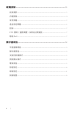 目錄 關於顯示器 ................................................................. 5 包裝內容物............................................................................. 5 產品特色 ................................................................................ 6 辨識各部位與控制鈕 ................................................................ 7 隨插即用功能 ........................................................................10 維護準則 ...............................................................................10 設置顯示器 .........