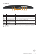 Identifier les pièces et les commandes Vue de devant 1 2 Commandes du panneau frontal Nom Description 1 Boutons de fonction (pour plus d'informations, voir Fonctionnement du moniteur) 2 Bouton d'alimentation Marche/Arrêt (avec voyant DEL) REMARQUE : Pour les écrans avec lunettes brillantes, l'utilisateur doit considérer le placement de l'écran en ayant en tête que la lunette peut causer des réfléchissements de lumière ambiante ou venant de surfaces brillantes et perturber l'écran.
