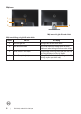 Mặt sau 1 2 4 3 Mặt sau với giá đỡ màn hình Mặt sau không có giá đỡ màn hình Nhãn Mô tả Sử dụng 1 Nút nhả giá đỡ Nhả giá đỡ ra khỏi màn hình. 2 Khe khóa an toàn Giữ chặt màn hình bằng khóa an toàn (khóa an toàn không kèm theo màn hình). 3 Nhãn số sê ri mã vạch Tham khảo nhãn này nếu bạn cần liên hệ với Dell để được hỗ trợ kỹ thuật. 4 Khe cắm quản lý cáp Dùng để bố trí các loại cáp bằng cách đặt chúng xuyên qua rãnh này.