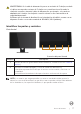 Vista posterior 1 2 4 3 Vista posterior con la base del monitor Vista posterior sin el pedestal del monitor Etiqueta Descripción Uso 1 Botón de liberación de la base Permite liberar la base del monitor. 2 Ranura de bloqueo de seguridad Permite proteger el monitor con un cierre de seguridad (cierre de seguridad no incluido). 3 Etiqueta de número de serie de código de barras Tenga a mano esta etiqueta si necesita ponerse en contacto con el soporte técnico de Dell.