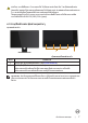 มุมมองด้านหลัง 1 2 4 3 มุมมองด้านหลังพร้อมขาตั้งจอภาพ มุมมองด้านหลังเมื่อไม่ใส่ขาตั้งจอภาพ ป้าย คำ�อธิบาย การใช้งาน 1 ปุ่มคลายขาตั้ง คลายขาตั้งจากจอภาพ 2 สล็อตล็อคเพื่อความปลอดภัย ยึดจอภาพด้วยล็อคเพื่อความปลอดภัย (ไม่ได้ให้ล็อคเพื่อความปลอดภัยมา) 3 ฉลากบาร์โค้ดหมายเลขผลิตภัณฑ์ ดูหมายเลขบนฉลากนี้ หากคุณจำ�เป็นต้อง ติดต่อ Dell สำ�หรับการสนับสนุนด้าน เทคนิค 4 ช่องจัดเก็บสายเคเบิล ใช้เพื่อจัดระเบียบสายเคเบิล โดยการร้อย ผ่านช่องนี้ 8 | เกี่ยวกับจอภาพของคุณ