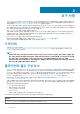 참고, 주의 및 경고 노트: 참고"는 제품을 보다 효율적으로 사용하는 데 도움이 되는 중요 정보를 제공합니다. 주의: 주의사항은 하드웨어의 손상 또는 데이터 유실 위험을 설명하며, 이러한 문제를 방지할 수 있는 방법을 알려줍니다. 경고: 경고는 재산 손실, 신체적 상해 또는 사망 위험이 있음을 알려줍니다. © 2017 Dell Inc. All rights reserved.Dell, EMC 및 기타 상표는 Dell Inc. 또는 자회사의 상표입니다. 기타 상표는 각 소유자의 상표일 수 있습니다.
