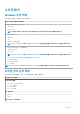 소프트웨어 Windows 운영 체제 다음 표에 지원되는 소프트웨어가 나와 있습니다. Windows 운영 체제(32 및 64비트) • Microsoft Windows 7 SP0 ~ SP1 - Enterprise - Professional 노트: 레거시 부팅 모드는 Windows 7에서 지원됩니다. UEFI는 Windows 7에서 지원되지 않습니다. • Microsoft Windows 8 - Enterprise - Pro - Windows 8(소비자용) 노트: Opal Compliant SED 및 Dell 컴퓨터 모델 - UEFI 지원과 함께 사용할 경우 UEFI 모드가 지원되는 Windows 8 • Microsoft Windows 8.1 - 8.1 업데이트 1 - Enterprise Edition - Pro Edition 노트: Opal Compliant SED 및 Dell 컴퓨터 모델 - UEFI 지원과 함께 사용할 경우 UEFI 모드가 지원되는 Windows 8.