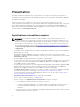 pour les tâches de base à exécuter en vue d'un déploiement réussi dans l'environnement de préinstallation Windows (Windows PE) ou dans l'environnement Linux intégré. • Le manuel Dell OpenManage Deployment ToolKit Command Line Interface Reference Guide (Guide de référence de l'interface de ligne de commande (CLI) Dell OpenManage Deployment ToolKit) fournit des informations sur les utilitaires de ligne de commande qui permettent de configurer les fonctionnalités du système.