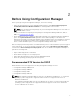 5. Type Task sequence name and Description for the task sequence. 6. Browse for the Dell boot image that you had created, and click Finish. A confirmation message is displayed. Editing a Task Sequence To edit a new task sequence or an existing task sequence: 1. Launch Configuration Manager by clicking Start → Microsoft System Center → Configuration Manager 2007 → Configuration Manager Console. The Configuration Manager Console screen is displayed. 2.