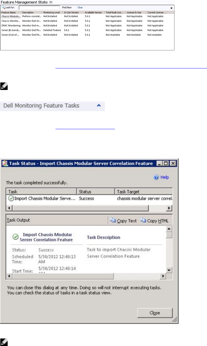 NOTE: Wait for a task to complete before launching another task using the Feature Management Dashboard.