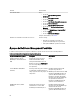Fonction Fonctionnalité Lancement de tâche Lance : • • • • • • • • • • La console Dell OpenManage Server Administrator. La console Dell Remote Access. La console Dell CMC. La console Dell Modular Chassis Remote Access. La console Bureau à distance. La console Dell OpenMange Power Center. La console Web Dell Connections License Manager. La page Web Informations sur la garantie Dell. La console iDRAC. La console Dell License Manager. Pour plus d'informations, voir Tâches.