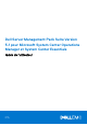1 Introduction Ce document décrit les activités que vous pouvez effectuer à l'aide du Dell Server Management Pack Suite version 5.1 pour Microsoft System Center 2012 R2 Operations Manager, Microsoft System Center 2012 SP1 Operations Manager, Microsoft System Center 2012 Operations Manager, Microsoft System Center Operations Manager 2007 R2 et Microsoft System Center Essentials (SCE) 2010. L'intégration de Dell Server Management Pack Suite version 5.