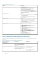 Tabelle 21. Funktionsverwaltungsaufgaben (fortgesetzt) Tasks Beschreibung DRAC-Überwachungsfunktion importieren Aktiviert die DRAC-Überwachungsfunktion. DRAC-Überwachungsfunktion aktualisieren Aktualisierungen zur neuesten Version der DRACÜberwachungsfunktion . DRAC-Überwachungsfunktion entfernen Entfernt die DRAC-Überwachungsfunktion. Gehäuseüberwachung Gehäuseüberwachungsfunktion importieren Aktiviert die Gehäuseüberwachungsfunktion.