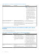 Tabla 24. Alertas de administración de funciones (continuación) Texto de alerta Estado de alerta Causa Solución Manager versión 1.0 en dell.com\support\manuals. Compruebe si se puede acceder a Dell Connections License Server. Compruebe los privilegios de acceso para obtener la licencia en Dell Connections License Server.