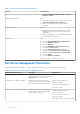 Tabla 18. Tareas de Dell usando el servidor (fuera de banda) de Dell (continuación) Tarea Descripción NOTA: El inicio de OpenManage Server Administrator solo es posible si un sistema operativo Windows o Linux y Dell OpenManage Server Administrator están instalados en el nodo administrado. Iniciar la consola de Dell Remote Access Inicia la consola de iDRAC para los servidores iDRAC detectados fuera de banda. Iniciar Dell License Manager Inicia Dell License Manager en el sistema de administración.