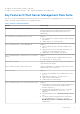 ● Support for latest firmware of iDRAC7, and CMC ● Support for new alerts from iDRAC7, CMC, and Dell OpenManage Server Administrator Key Features Of Dell Server Management Pack Suite This version of Dell Server Management Pack Suite provides the following features for managing the Dell servers that run on Windows operating systems and also the out-of-band Dell devices: Table 1.