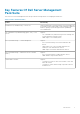 Table 14. Dell Tasks Using Dell Server (Out-of-band) Task Description Launch Dell Remote Access Console Launches the iDRAC console for the out-of-band discovered servers. Launch Dell License Manager Launches the Dell License Manager on the management system. NOTE: Launching Dell License Manager is possible only if a Windows or Linux operating system is installed and Dell License Manager is also installed. Launch Remote Desktop Monolithic Server Launches the remote desktop for the selected system.