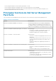 • • • Prise en charge des dernières versions du micrologiciel iDRAC7 et CMC Prise en charge de l’importation automatique de la fonction de surveillance de serveurs intrabande Prise en charge de l’importation automatique de la fonction de surveillance de serveurs Dell hors bande (sans agent) (si les informations d’identification de licence sont fournies) Principales fonctions de Dell Server Management Pack Suite Cette version de Dell Server Management Pack Suite fournit les fonctions suivantes pour la gest