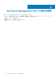 5 DRAC 監視機能 DRAC 監視機能は、SNMP を使用して、様々な世代の DRAC(DRAC 5、iDRAC 6 モジュラー、iDRAC 7 モジュラーおよびモノリシッ クシステム)の検出および監視をサポートします。 トピック: • • • • • • • 管理パックの機能性と依存性 拡張可能エディションと詳細エディションの機能の比較 検出とグループ化 監視 DRAC 監視のための Dell ユニット監視機能 ルール タスク 管理パックの機能性と依存性 次の表には、Dell Server Management Pack Suite の管理パックとユーティリティ、およびそれらの相互依存性がリストされていま す。 表 15. 管理パックの機能性と依存性 管理パックまたはユーティリティ 説明 Dell.DRAC.OM07.MP Dell Remote Access Card(DRAC 5、iDRAC Dell.Connections.HardwareLibrary.mp モジュラー、および iDRAC モノリシック) の検出および監視用の管理パックです。 Dell.Model.DRAC.