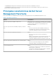 • • Compatibilidad para la importación automática de la función de supervisión en banda del servidor Dell Compatibilidad para la importación automática de la función de supervisión fuera de banda (sin agente) de servidor Dell (si se proporcionan las credenciales de la licencia) Principales características de Dell Server Management Pack Suite Esta versión de Dell Server Management Pack Suite proporciona las siguientes funciones para administrar dispositivos Dell: Tabla 1.