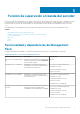 4 Función de supervisión fuera de banda del servidor La función de supervisión fuera de banda del servidor admite la detección y la supervisión de los servidores modulares y monolíticos Dell PowerEdge y servidores de almacenamiento Dell PowerVault mediante SNMP y WSMAN.
