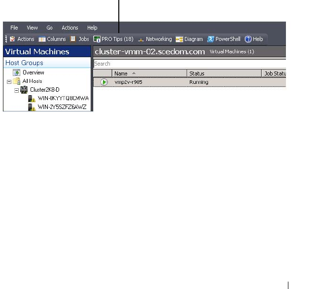 indem Sie PRO Tips verwenden, die auf der SCVMM-Konsole angezeigt werden.