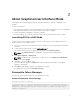 About Graphical User Interface Mode 2 The Graphical User Interface (GUI) provides an interactive approach to perform comparisons and updates. You can use the GUI to: • View the system comparison report, which displays the system inventoried device versions, applicable Dell update package (DUP) versions, and the devices that require an update. • Perform an upgrade, downgrade, or a system set update. • Browse the repository to view the supported components of all the platforms in the SUU DVD.