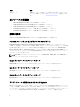 メモ、注意、警告 メモ: コンピュータを使いやすくするための重要な情報を説明しています。 注意: ハードウェアの損傷やデータの損失の可能性を示し、その問題を回避するための方法を説明してい ます。 警告: 物的損害、けが、または死亡の原因となる可能性があることを示しています。 © 2012 Dell Inc. 本書に使用されている商標:Dell™、Dell のロゴ、Dell Boomi™、Dell Precision™、OptiPlex™、Latitude™、PowerEdge™、PowerVault™、 PowerConnect™、OpenManage™、EqualLogic™、Compellent™、KACE™、FlexAddress™、Force10™ および Vostro™ は Dell Inc. の商標で す。Intel®、Pentium®、Xeon®、Core® および Celeron® は米国およびその他の国における Intel Corporation の登録商標です。 AMD® は Advanced Micro Devices, Inc.