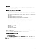 GUI モードについて 2 グラフィカルユーザーインタフェース(GUI)は、比較およびアップデート実行のためのインタラクティブな アプローチを提供します。 GUI を使って、以下のことができます。 • • 比較レポート を表示して、システムのコンポーネントとリポジトリ内の適用可能なコンポーネントを 表示する。 アップグレード、ダウングレード、またはシステムセットアップデートを実行する。 • リポジトリを参照する。 必須条件エラーメッセージ コンポーネントのエラーにより表示されるエラーメッセージ、および各エラーに対する処置は次の通りです。 ソフトウェア必須条件エラーメッセージ 必須条件エラーメッセージ: Your system does not meet the required prerequisites for installing the Dell OpenManage software component. Therefore, the row for the software component is disabled in the Comparison Report.