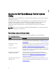 Solución del error de prerrequisitos de software Si al iniciar Dell OpenManage Server Update Utility (SUU) en el modo GUI, falla la comprobación de prerrequisito, haga lo siguiente: 1. Instale Dell OpenManage SUU versión 4.3 o posterior. 2. Continúe con la Actualización, Degradación o Actualización de los componentes.