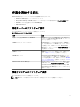 関連文書 本ガイドに加え、デルサポートサイト support.dell.com/manuals で利用できる次のガイドにアクセスすること ができます。マニュアルページで、ソフトウェア → システム管理 をクリックします。右側の該当する製品 リンクをクリックして、マニュアルにアクセスします。 たとえば、システム管理ページで Dell SPI に関するマニュアルを表示するには、製品リストから Dell OpenManage Connections → Microsoft Windows 向け HP Operations Manager 9.0 用 Dell Smart Plug-in を選択しま す。 • • • • • • • • • • 24 Microsoft Windows 向け HP Operations Manager 9.0 用 Dell Smart Plug-in バージョン 3.