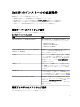 Dell デバイス 対応 OMSA バージョン 対応ファームウェアバージョン CMC 該当なし 4.45 および 4.50 VRTX CMC 該当なし 1.2 および 1.3 FX2 CMC 該当なし 1.1 Dell Compellent ストレージアレイ 該当なし 6.4.3 および 6.5.1 Dell EqualLogic PS-Series ストレー ジアレイ 該当なし 6.0 および 7.0 PowerVault MD ストレージアレイ 該当なし 07.84.47.60、07.84.53.60、および 08.10.03.00 Dell PowerVault NX 第 9 世代(9 G) 7.2~7.4 ~第 12 世代(12 G)ストレージア レイ Dell ネットワークスイッチ 該当なし 該当なし • S-Series – S25(8.4.2.7) – S50(8.4.2.7) – S55(8.3.5.5) – S60(8.3.3.9) – S4810(9.2 および 9.3) • – S4820T(9.2 および 9.