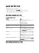 표 4. 명령줄 옵션 옵션 설명 -snmptimeout SNMP 시간 제한 값을 밀리초 단위로 지정합니다. 기 본값은 5000(5초)입니다. 100밀리초와 4294967290밀리 초 사이의 값을 설정합니다. -snmpretries SNMP 다시 시도 횟수를 지정합니다. 기본값은 1입니 다. -dwsurl Dell OpenManage Server Administrator 웹 서버 콘솔 URL 을 지정합니다. -dclmwebserviceurl DCLM 웹 서비스 URL을 지정합니다. 예: http://dclmserver.domain.com:8543/ -dclmusername 기본 인증으로 로그인할 DCLM 사용자 이름을 지정합 니다. 예: domain\username -dclmpassword 기본 인증으로 로그인할 DCLM 암호를 지정합니다. -getall 모든 옵션에 대한 값을 지정하고, 화면에 표시합니다. 이 옵션은 다음을 제외한 모든 개별 매개변수의 값을 가져옵니다.