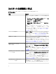 • Dell DRAC およびシャーシスケジュール済みステータスポーリング • Dell Compellent ストレージアレイスケジュール済みステータスポーリング • Dell EqualLogic アレイスケジュール済みステータスポーリング • Dell MD ストレージアレイスケジュール済みステータスポーリング • Dell PowerVault NX ストレージアレイスケジュール済みステータスポーリング • Dell 8000 | 8100 ネットワークスイッチのスケジュールされたステータスポーリング • Dell Enterprise シリーズスイッチのスケジュール済みステータスポーリング グローバル正常性ステータスは、デバイスの全体的な正常性です。ただし、デバイスの個々のコンポーネン トの正常性は異なる場合があります。Dell デバイスの個々のコンポーネントの正常性を表示するには、それ らの Dell デバイスに関連付けられているそれぞれのツールを起動します。 表 6.