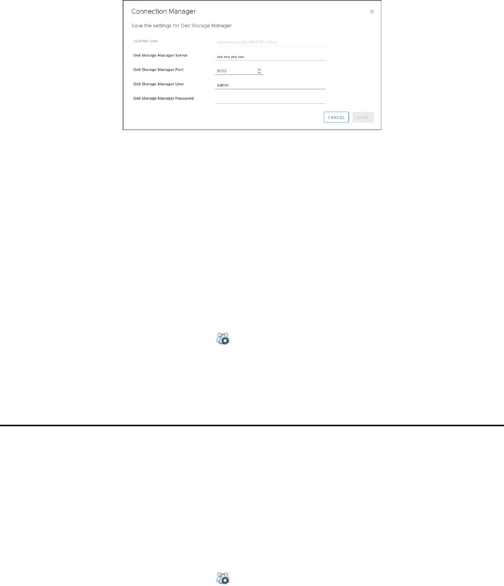 6. Modify the vCenter and Dell Storage Manager credentials as needed and click Save.