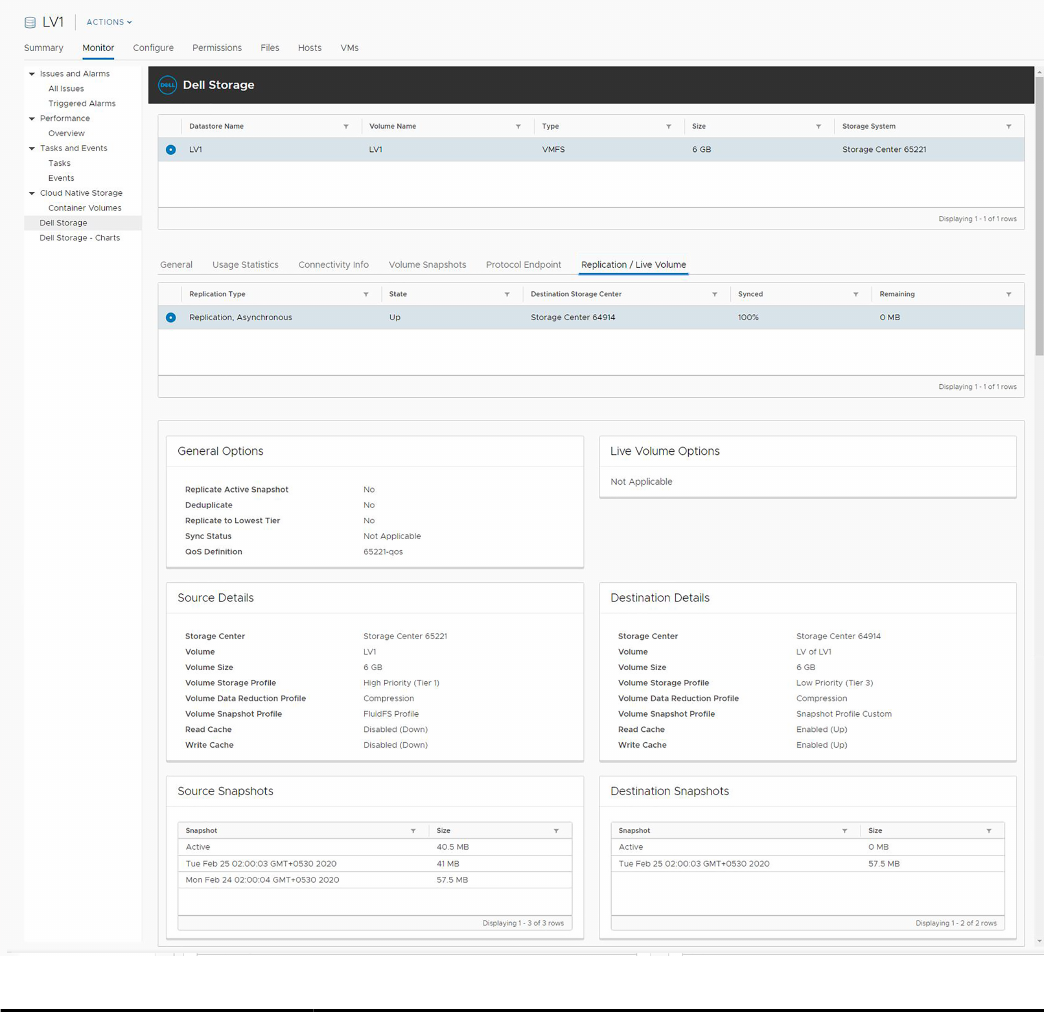 Live Volume Options Settings that are configured for the Live Volume, if the selected volume is a Live Volume